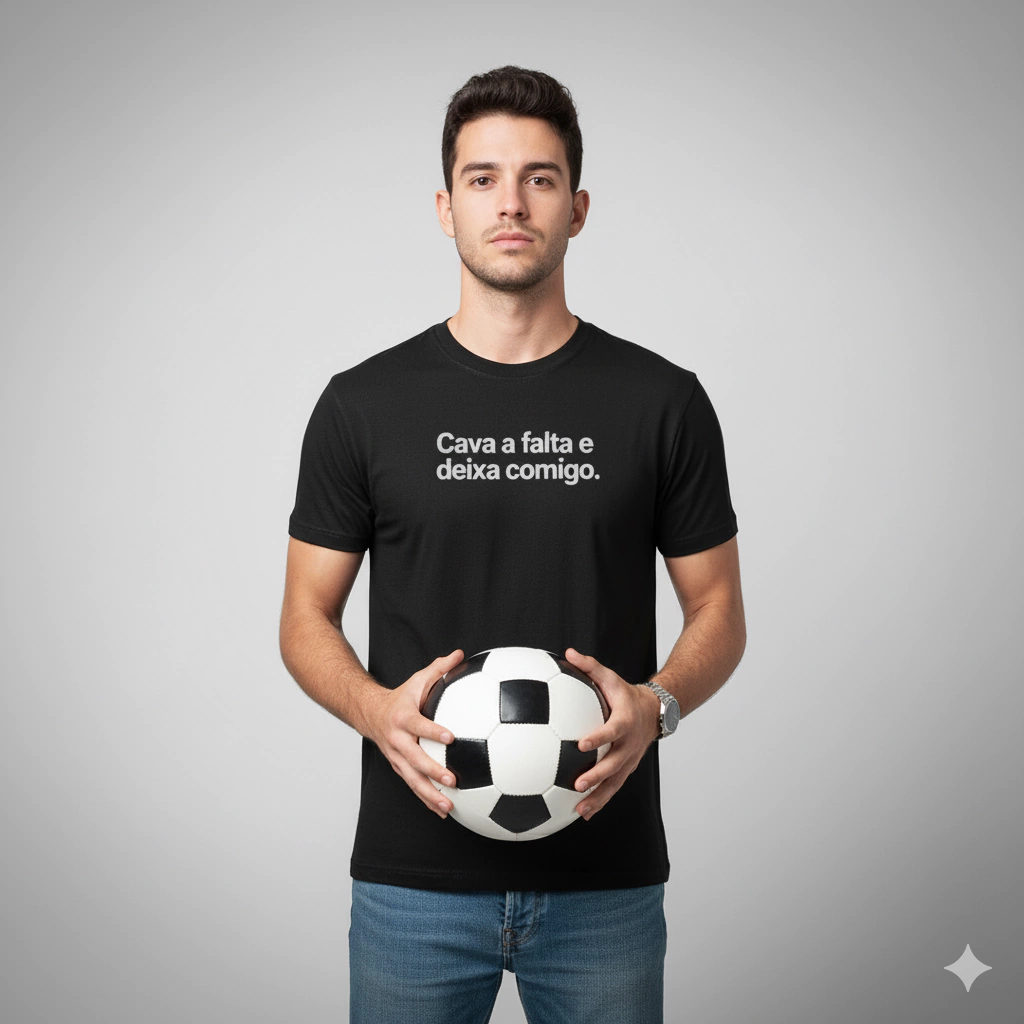 Com seu design toda preta e a frase impactante "CAVA A FALTA E DEIXA COMIGO" estampada na frente, ela é ideal para expressar sua personalidade de forma autêntica e descontraída. Seja para o dia a dia ou para momentos de lazer, essa peça combina versatilidade e atitude.