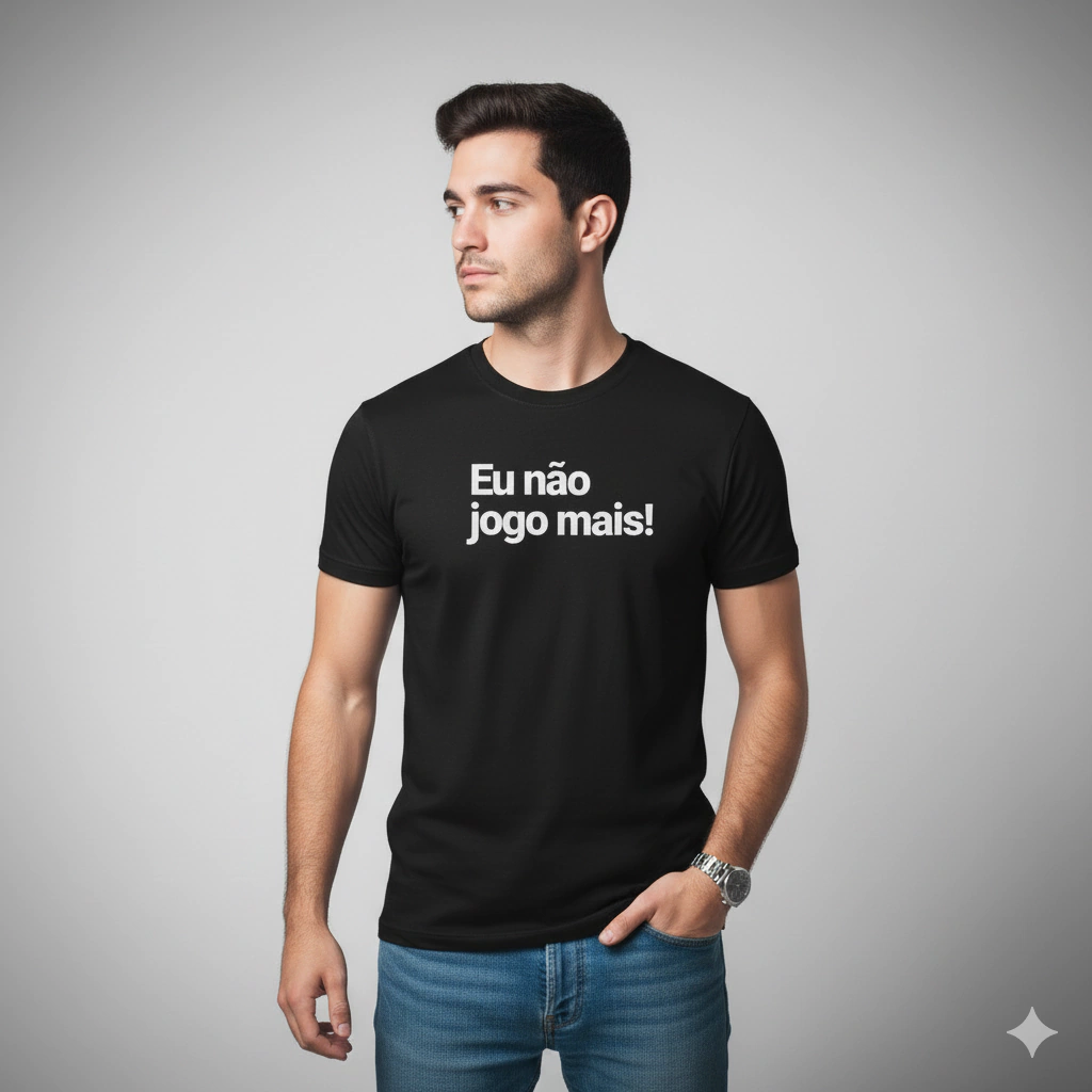 Com seu design toda preta e a frase impactante "EU NAO JOGO MAIS" estampada na frente, ela é ideal para expressar sua personalidade de forma autêntica e descontraída. Seja para o dia a dia ou para momentos de lazer, essa peça combina versatilidade e atitude.
