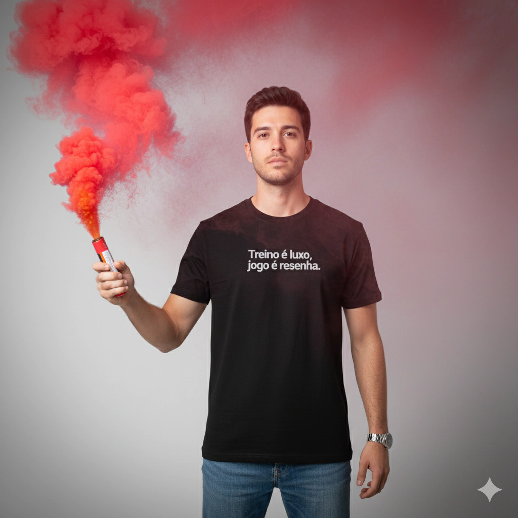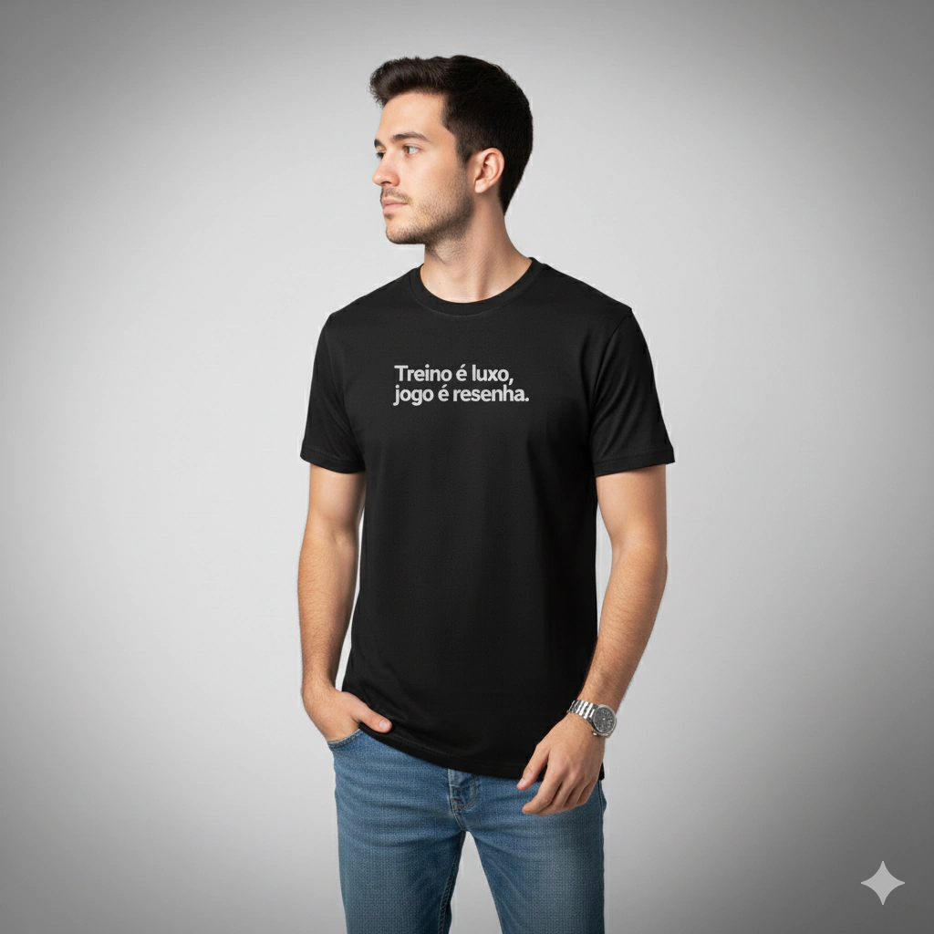 Com seu design toda preta e a frase impactante "TREINO E LUXO JOGO É RESENHA" estampada na frente, ela é ideal para expressar sua personalidade de forma autêntica e descontraída. Seja para o dia a dia ou para momentos de lazer, essa peça combina versatilidade e atitude.